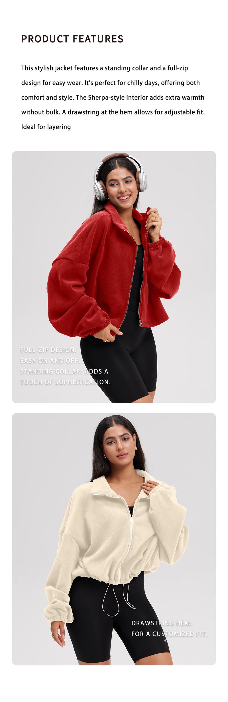 Introducing the Cloud Ease Women's Pullover – your ultimate companion for cold days. This luxuriously soft sherpa zip-up jacket combines comfort with functionality, featuring a sophisticated standing collar and convenient drawstring hem for a customizable fit.